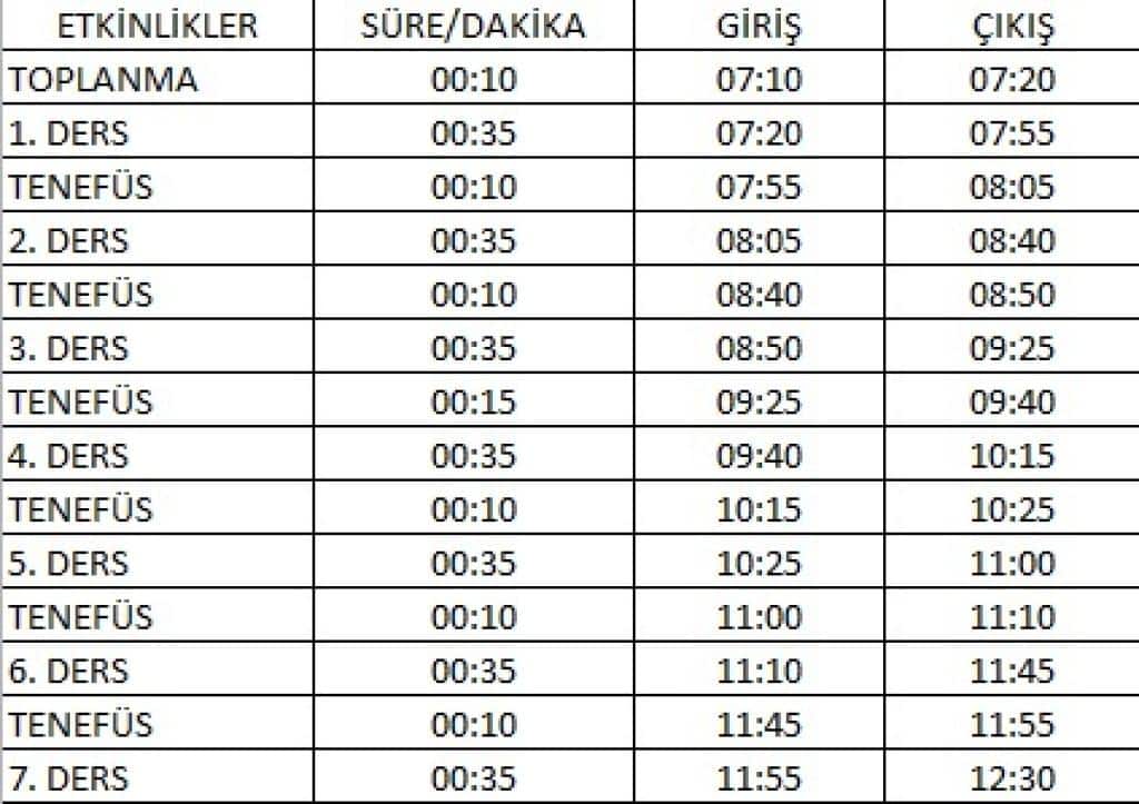 Okul giriş çıkış saatlerimiz görselde gösterildiği gibi düzenlenmiştir.